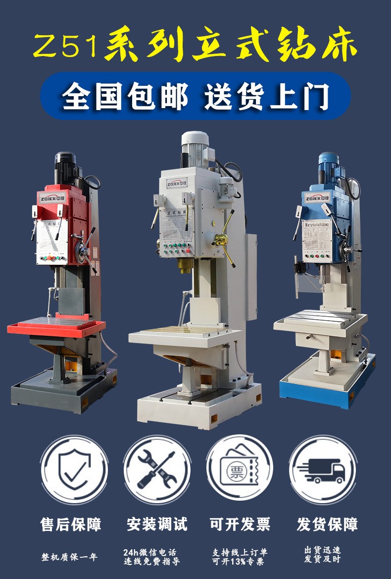 Z5150B方柱立式钻床 自动进给 钻攻两用机 Z5150中捷立钻