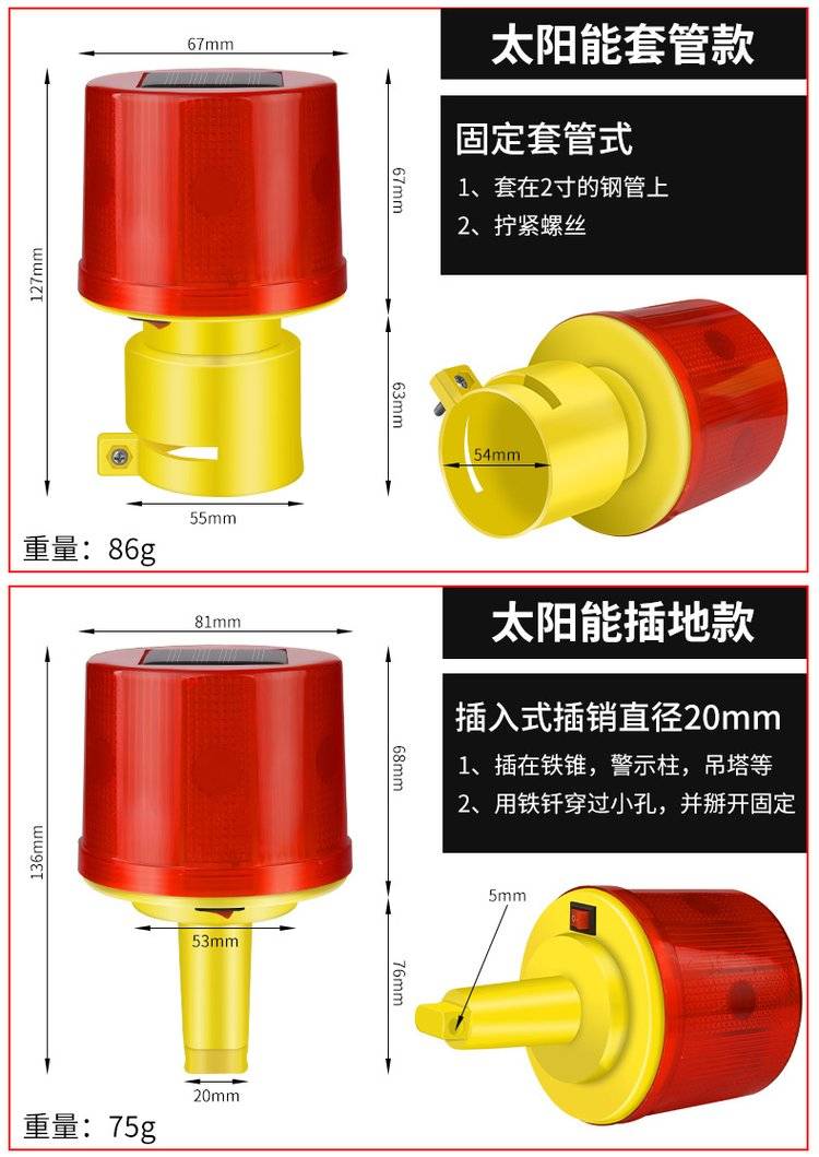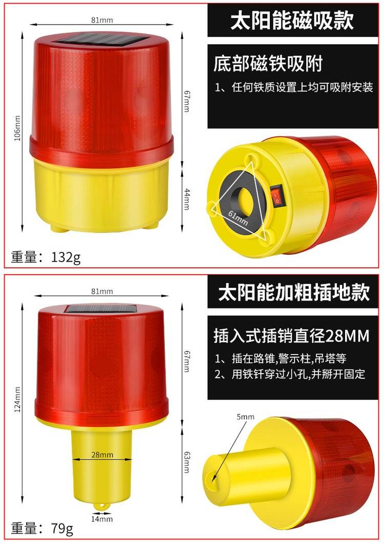 道路施工交通警示灯夜间LED太阳能路锥灯岗亭船用闪光灯