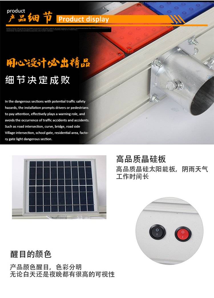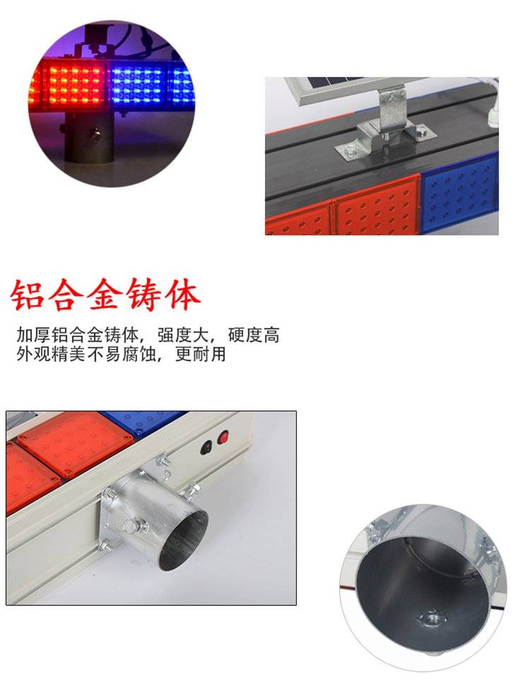 太阳能警示灯 四组双面爆闪灯红蓝交通路口闪光灯 道路施工信号灯