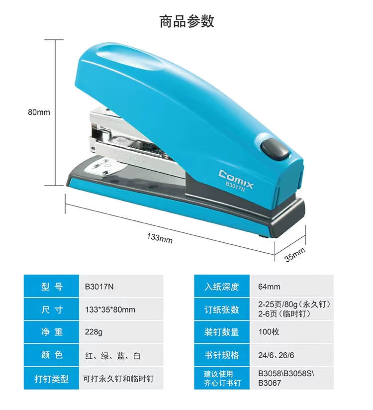 齐心B3017N 省力订书机 适配24/6 26/6订书钉 可装订2-25页纸