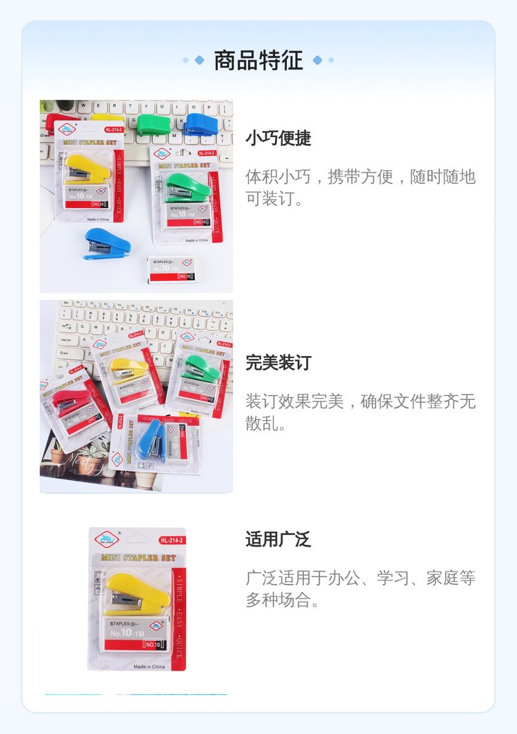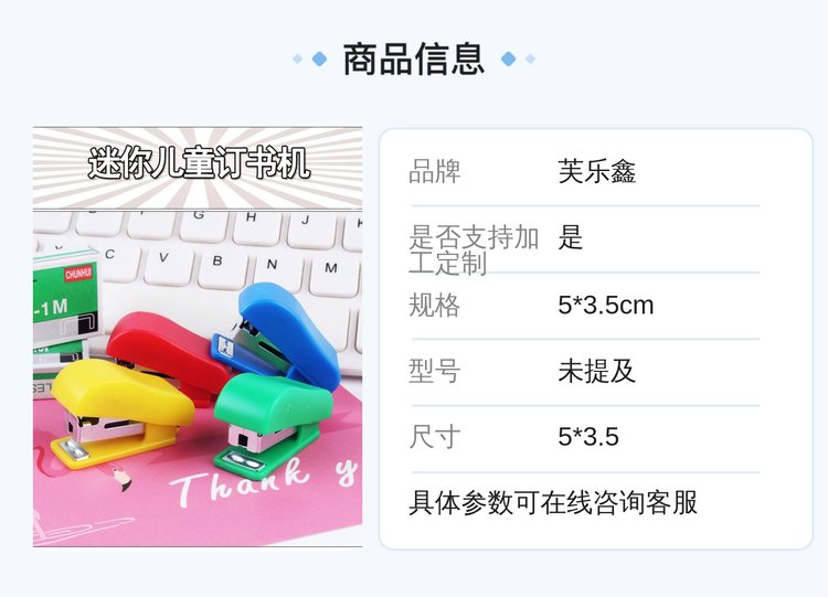 芙乐鑫塑胶小号订书机 10#订书针 5*3.5cm规格