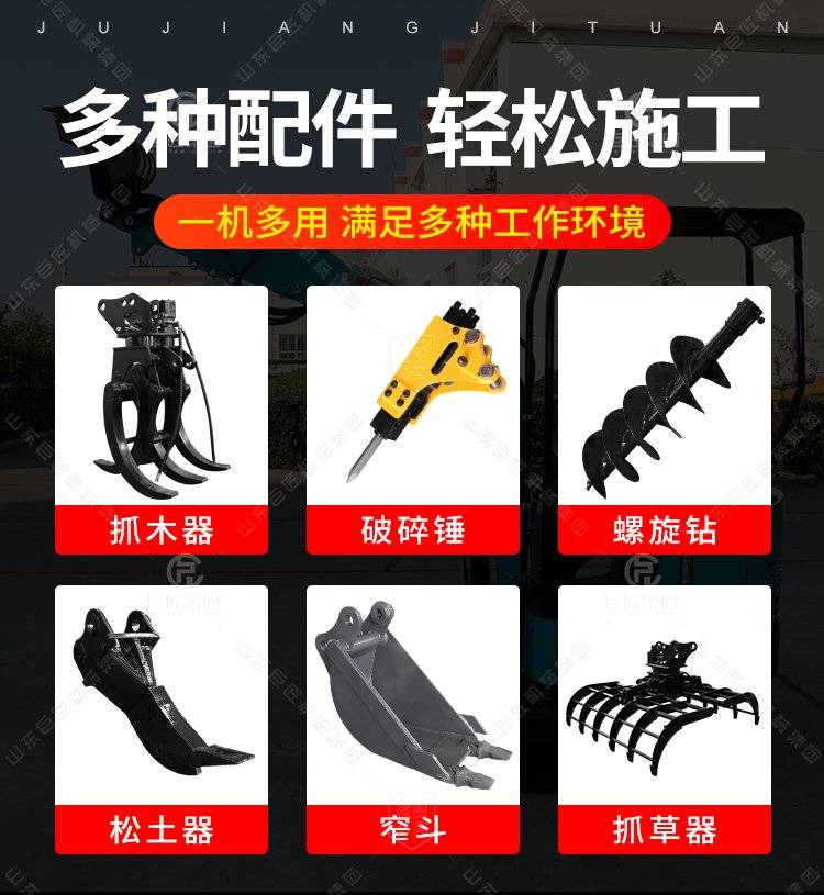 工程农用小挖机小型挖掘机家用挖土1吨2勾机破碎钩机微型果园园林