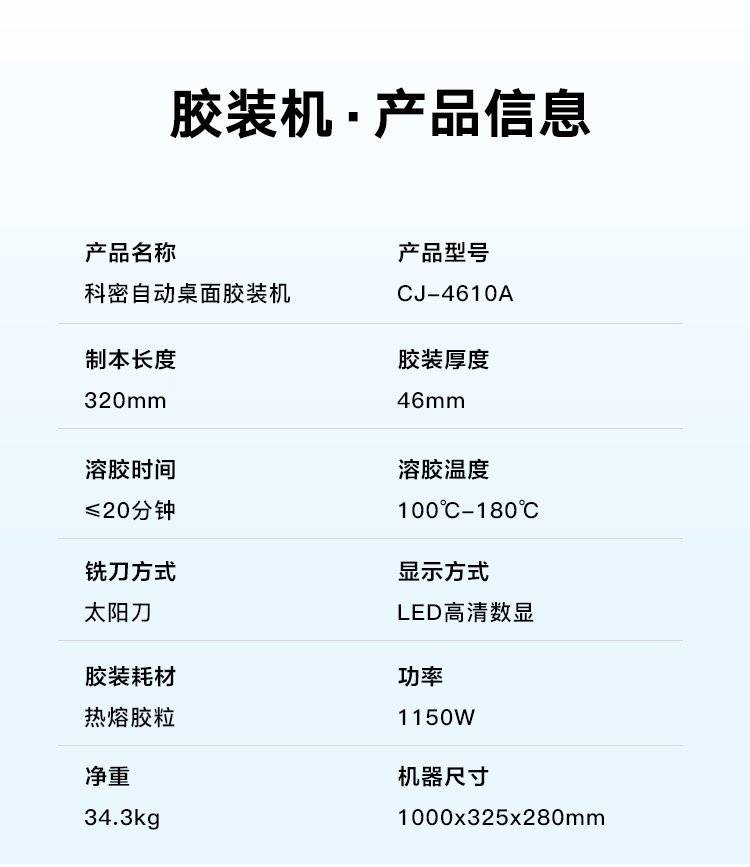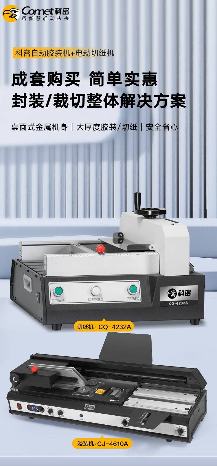 科密(comet)自动无线胶装机 合同文件标书图文书籍装订机CJ-4610A+电动切纸机CQ-4232A