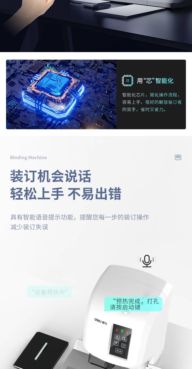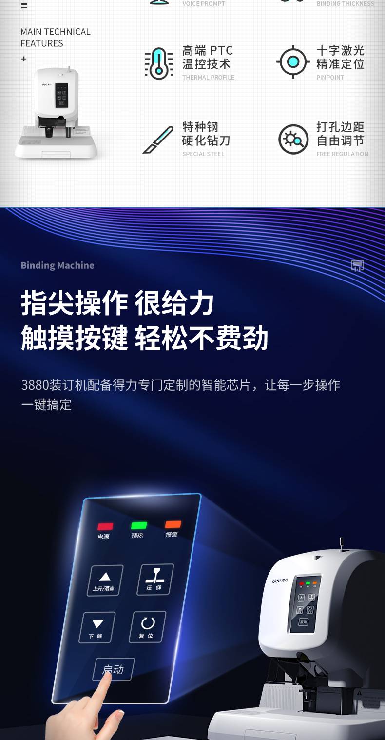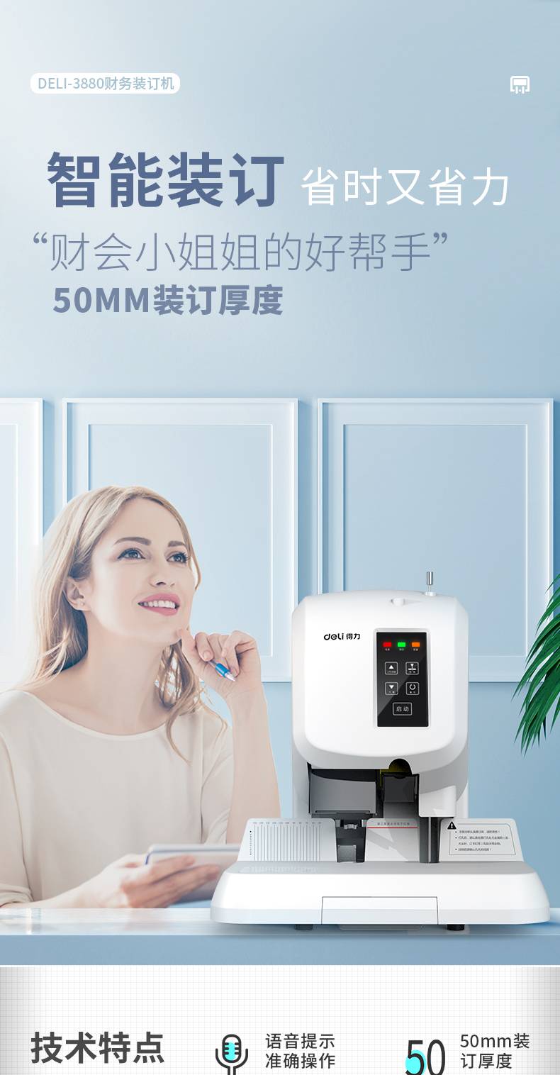 得力3880全自动装订机电动打孔机财务凭证热熔胶铆管