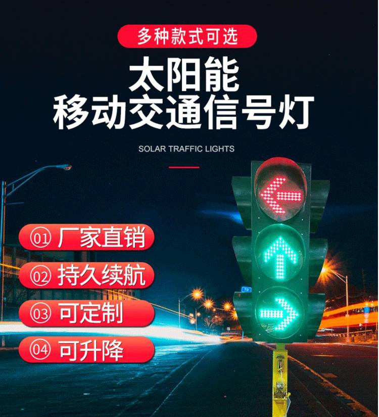 太阳能移动交通信号灯十字路口临时红绿灯交通警示灯