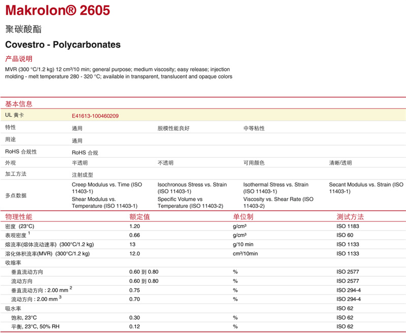 PC 德国拜耳 2605 中低粘度 聚碳酸酯 易脱模 通用原料