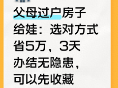 - 父母过户房子给娃:选对方式省5万,3天办结无隐患,可以先收藏