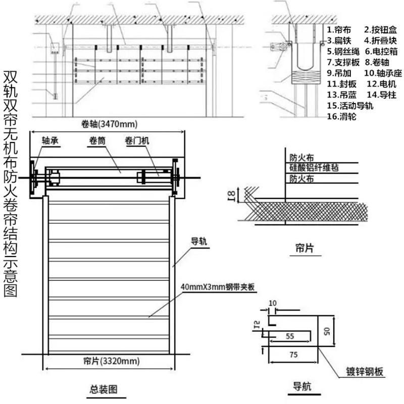 电动防火卷帘门特级无机布双轨双帘消防门钢质防火卷帘厂工程安装