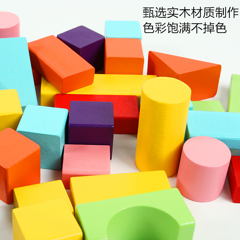 早教益智大块木制正方体三角形长方体积木块数学教具方块玩具无味