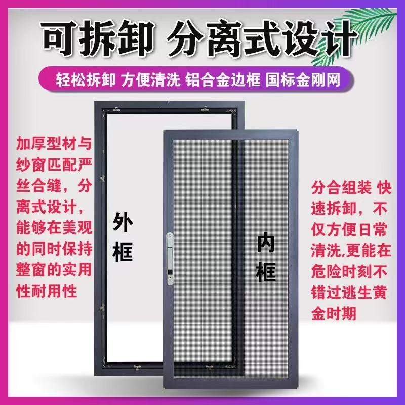 内开专用金刚网纱窗防盗防蚊防猫纱窗家用铝合金自装纱窗外装内开