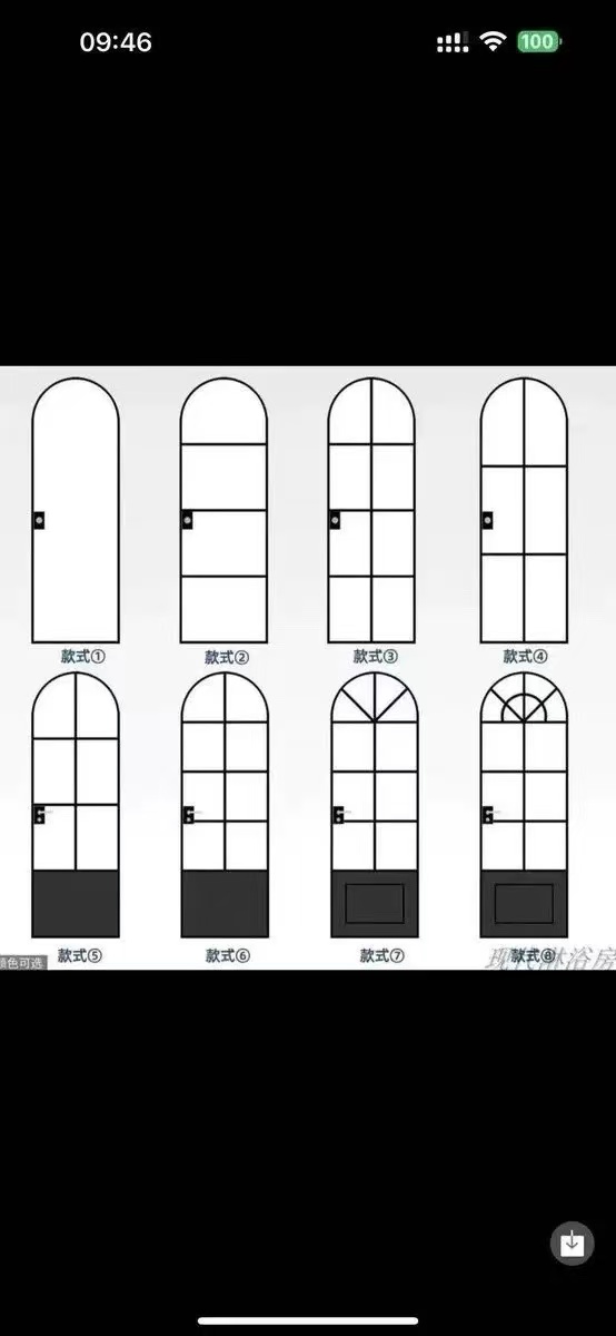 法式铁艺拱形复古极窄圆弧玻璃双开店铺酒吧庭院定制烤漆对开门